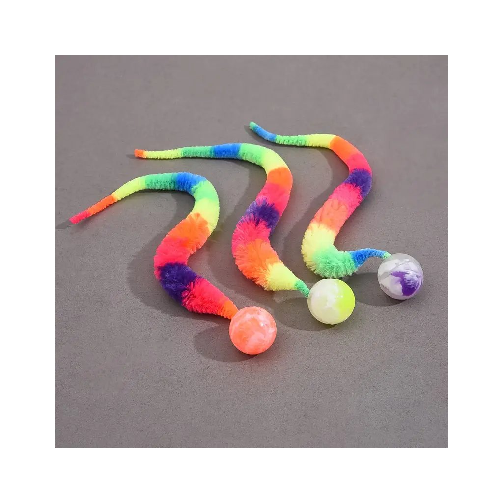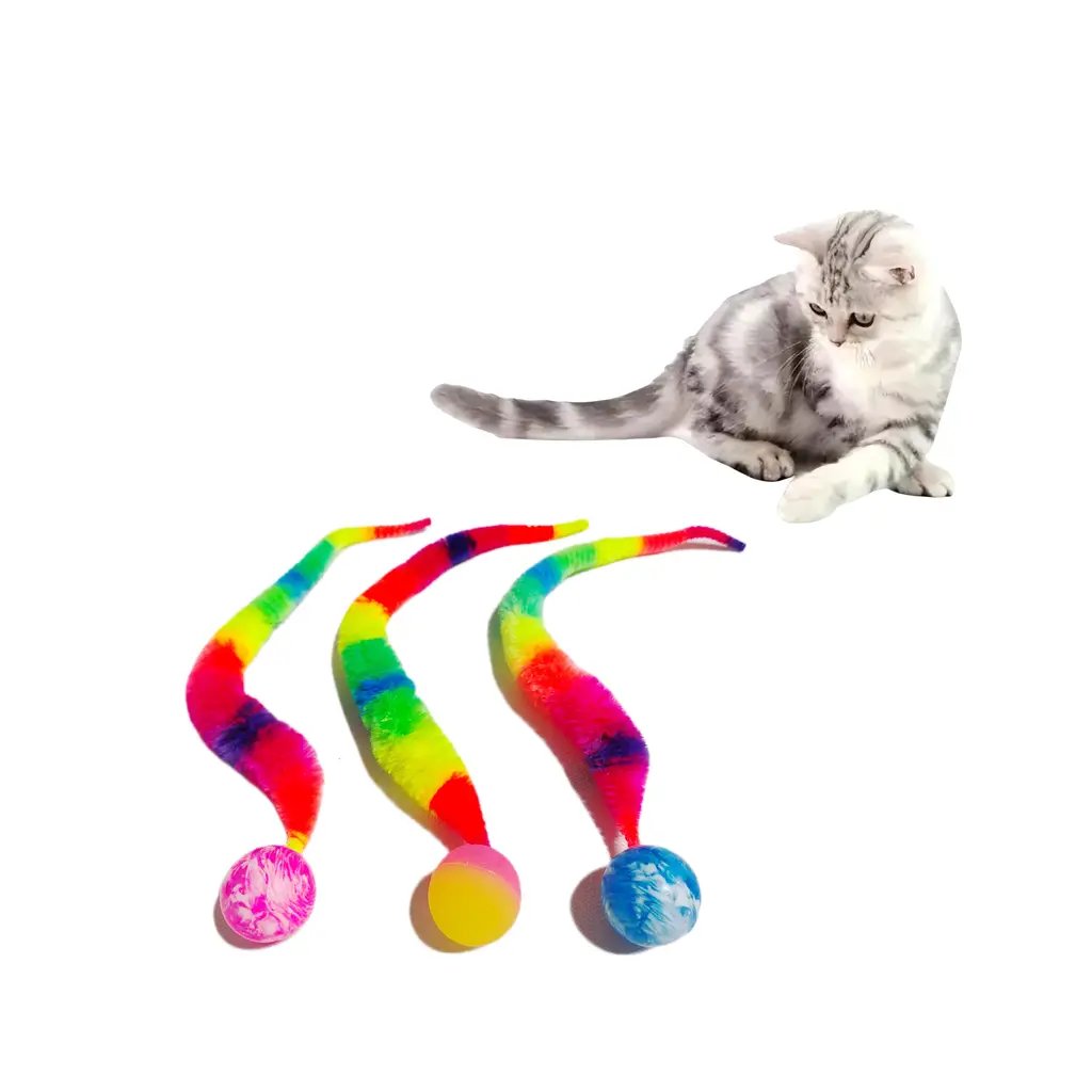 - Univerzální: Hračky s kočičím míčem s ocasem jsou všestranné a lze je použít různými způsoby, včetně házení, odpalování a honění, což z nich činí cenný přírůstek do sbírky hraček každého majitele kočky.