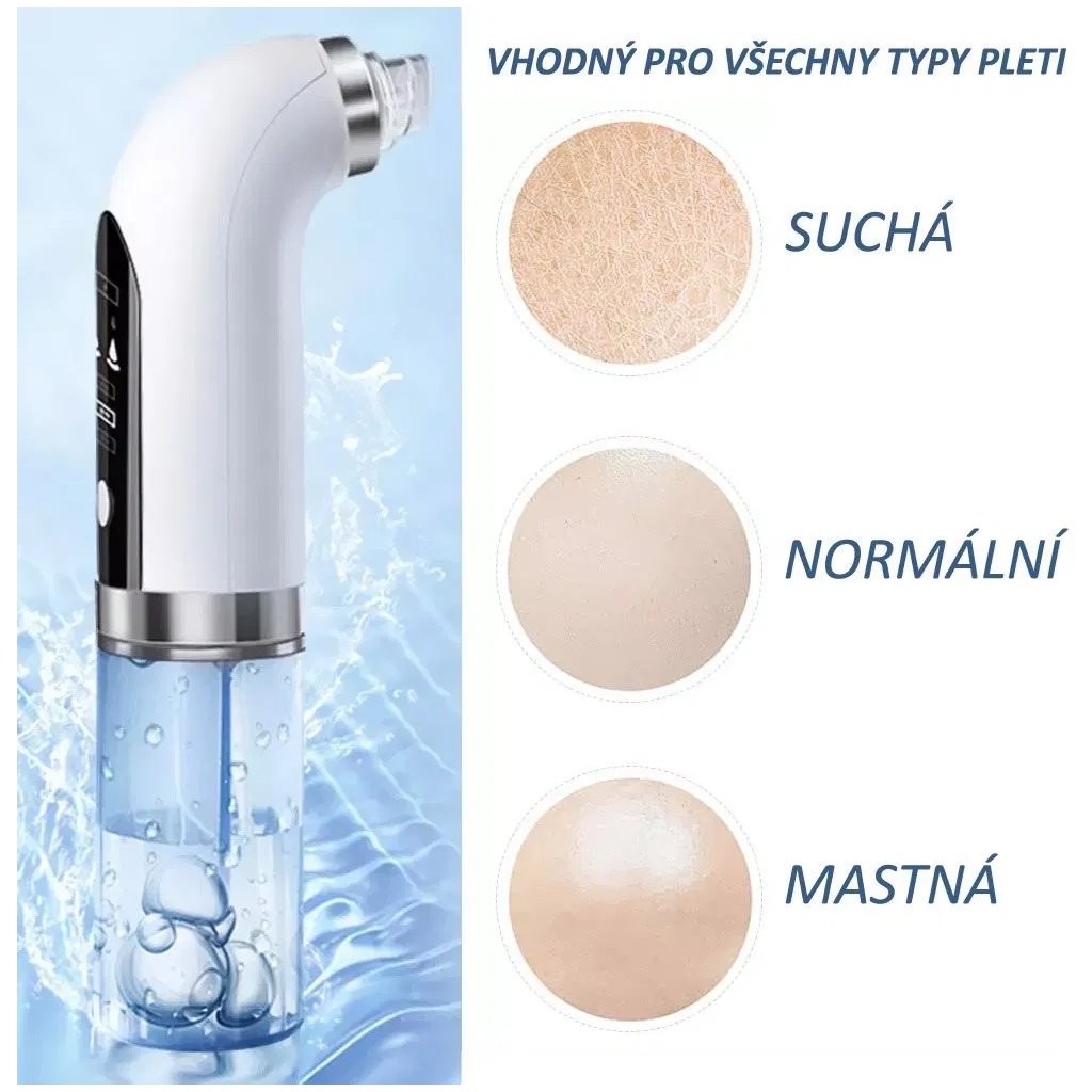 - 💆 Víceúrovňové odsávání pro všechny typy pleti – Nastavitelné nastavení odsávání pomáhá odstranit černé tečky, bílé tečky, odumřelou kůži a přebytečný maz bez podráždění.