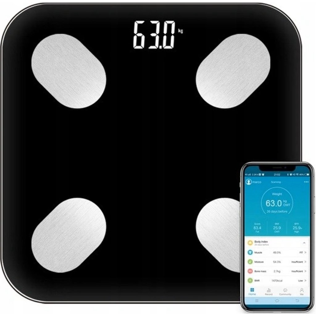 Váha je vybavena funkcí Bluetooth, která vám umožní snadné připojení k vašemu smartphonu. Jednoduše si stáhněte bezplatnou aplikaci "OKOK international" a sledujte svůj výkon a interpretujte data. Postup je jednoduchý – po stažení aplikace připojte telefon k váze, zapněte na telefonu funkci "Go" a stoupněte si na váhu. Všechna měření se zobrazí na obrazovce vašeho telefonu s úplným popisem.