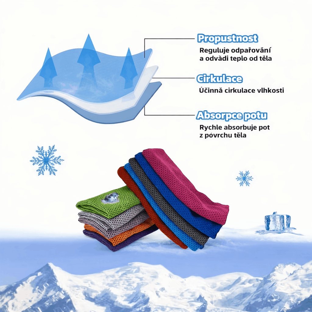 - Protřepejte ručník 3x až 5x ve vzduchu, čímž se aktivují chladící vlákna.