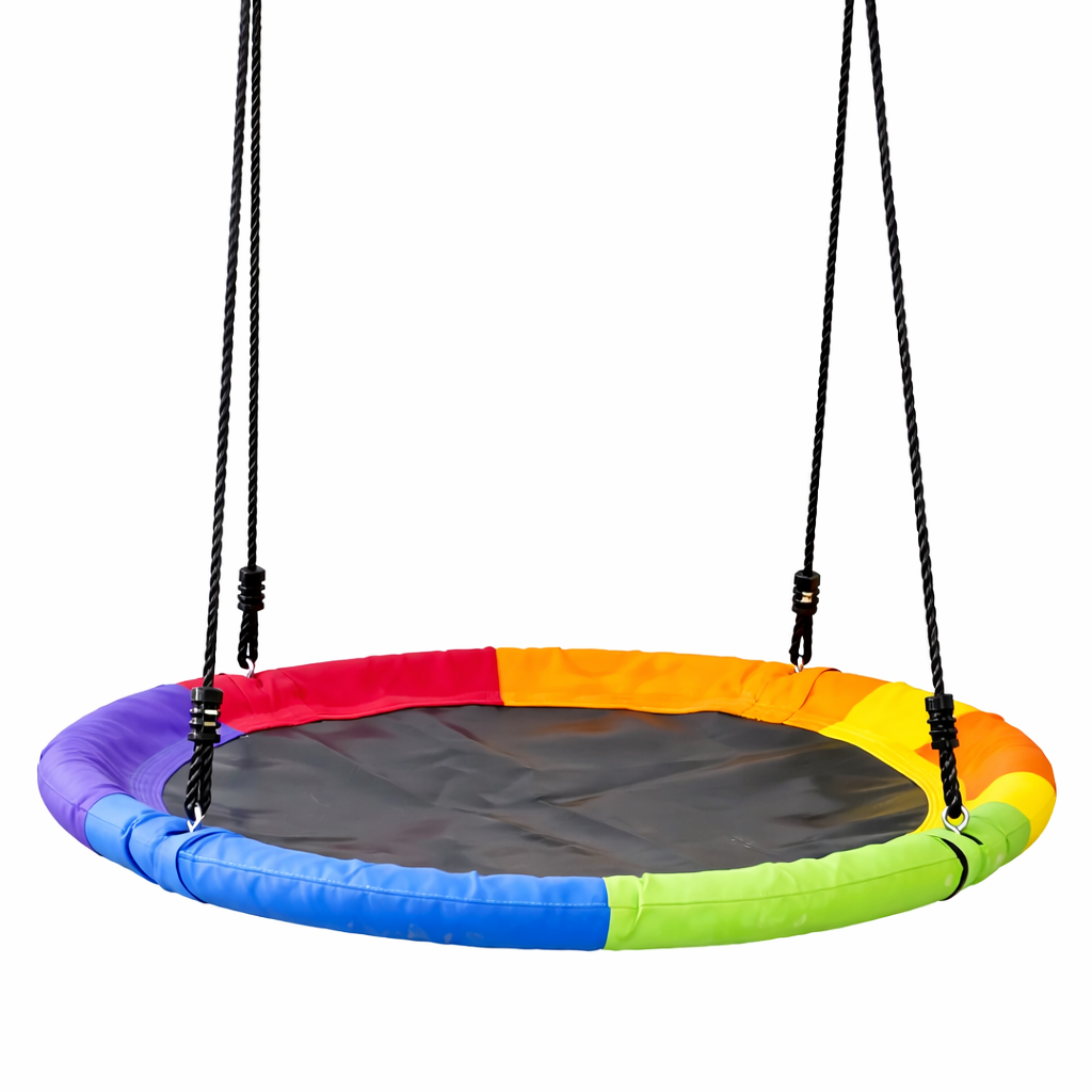 ✔️ Velká sedácí plocha – průměr 100 cm dělá houpačku prostornou a pohodlnou.